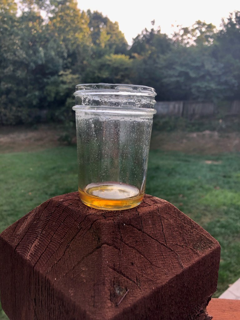 In hindsight, this would not be something I would do regularly. I was curious and had fun with the little experiment but I hope I didn’t encourage bad behavior in my bees. I certainly don’t want them returning close to the house regularly for any reasons. I also hope it doesn’t encourage any robbing behaviors that could be detrimental to either hive. It also made me wonder…if I placed an empty sticky jar of homemade strawberry jam out there would they “clean it up” in a similar way or does it only work with honey??? Maybe that’s an experiment for another day?!!!?! But for now, I’ve come to the conclusion that we will only be sharing honey with family and friends.