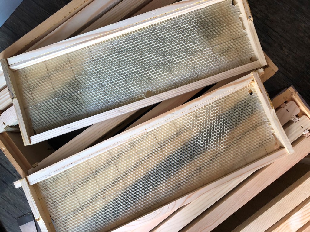 I thought we were going to use plastic foundation for the supers but my mentor (who is very knowledgeable and wonderful) wanted me to use wax foundation (just like we did in our brood boxes). It made for a scramble but the owners at Isabees were wonderful and were able to wire up the wax super foundation for me on short notice. So thankful. The beekeeping community continues to be tight and very helpful/friendly.